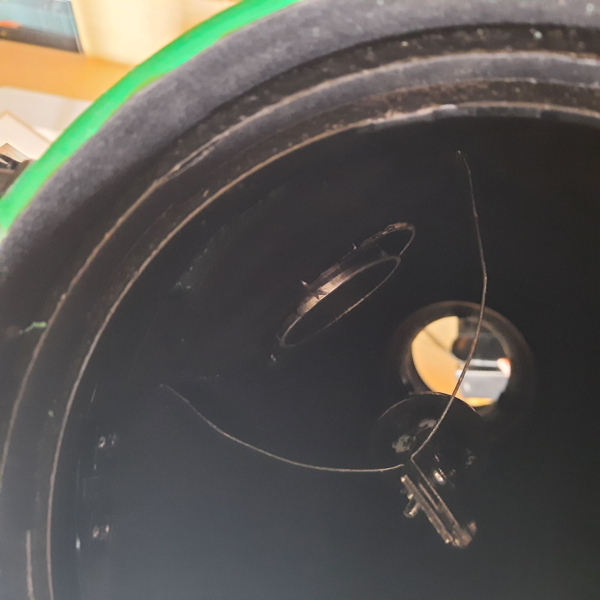 Es kam dann doch anders, da ich ihr Schrottteleskop nicht für sie verkaufen, ja nicht mal geschenkt selbst haben wollte, kamen wir schließlich irgendwann überein, dass ich Teile davon und Teile von mir zu einem Teleskop für sie zusammenbasteln sollte. Damit hatte ich dann doch wieder mal, was ich eigentlich immer will. Betriebsamkeit in der Werkstatt.