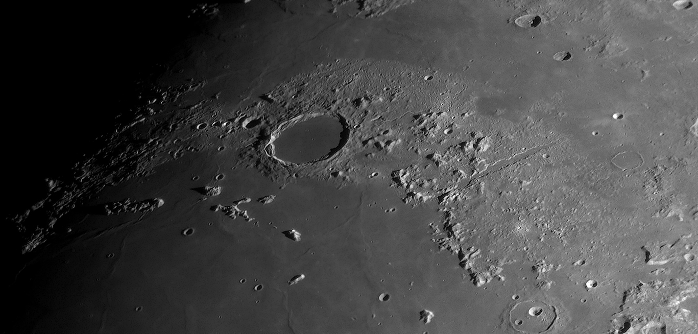sowie ein Mondkrater dessen mit 114 mm Öffnung sichtbare Detailfülle mich derzeit (und wohl noch eine ganze Weile) zeichnerisch überfordert.